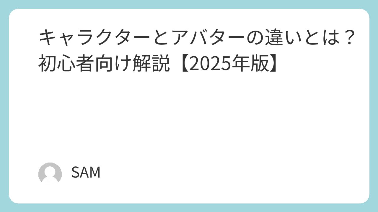 この2つは似ているようで、実は役割も作り方も違います。この記事では「キャラクターとアバターの違い」をわかりやすく解説します。